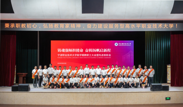 9月19日下午,宁波职业技术大学在李惠利大剧院隆重举行新学期教职工大会暨先进表彰会。会议以“铸魂强师担使命,奋楫扬帆启新程”为主题,校党委书记张慧波、校长吴向鹏等校领导及全体中层干部、教职工代表、兼职教师代表参加此次大会。